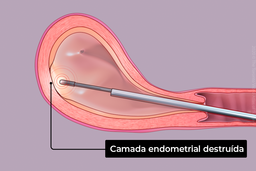 Procedimento que destrói (queima) o revestimento interno do útero para tratar menstruações intensas.